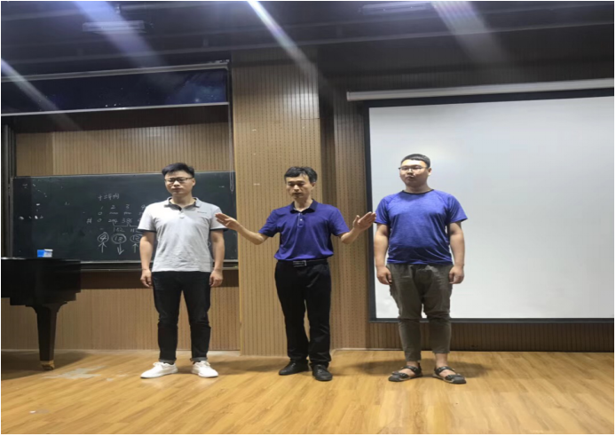7月8日上午,开班典礼结束后陈新宇教授在艺术楼八音讲堂为50名参训学员上了培训第一课——《合唱指挥》。