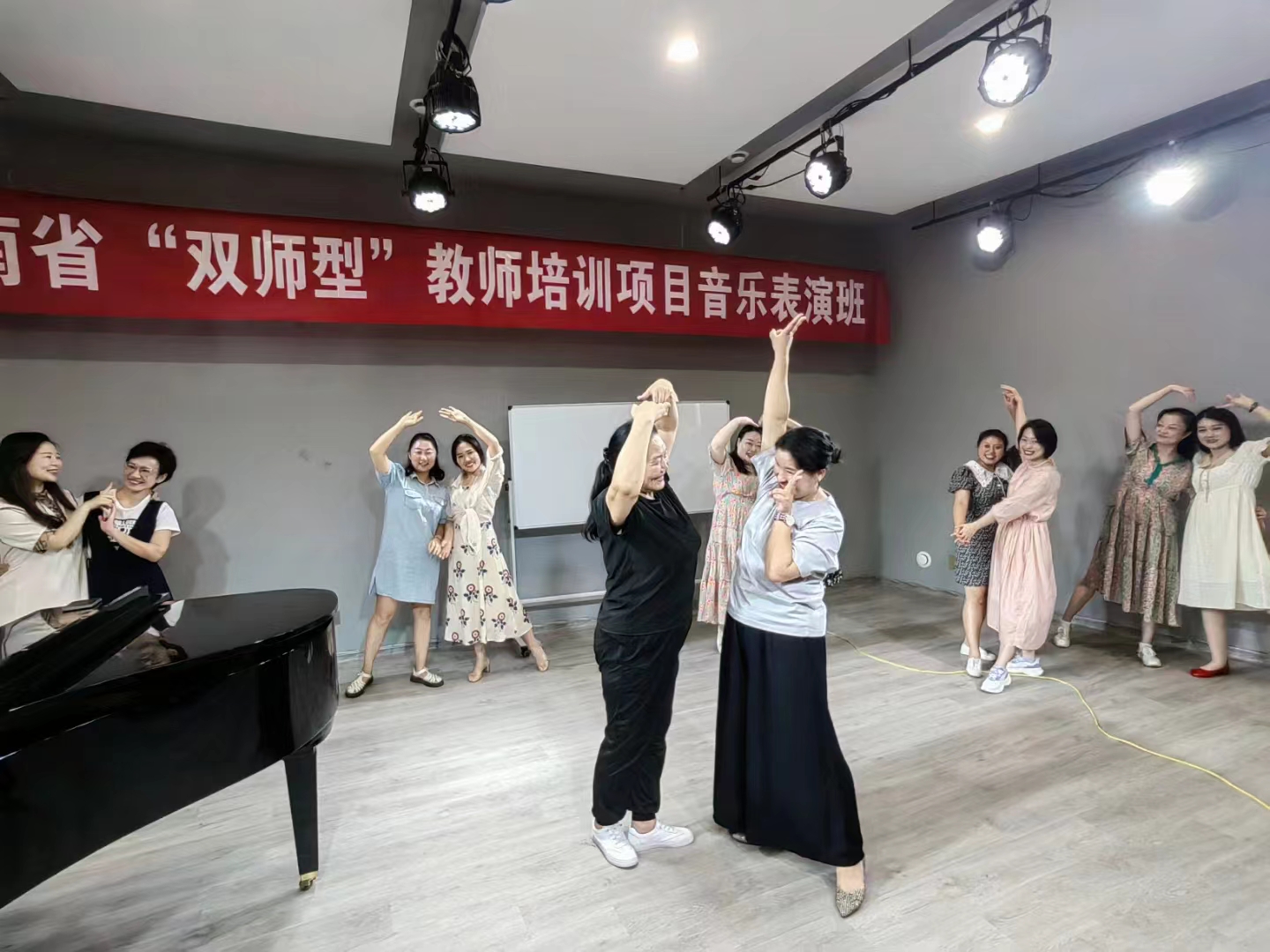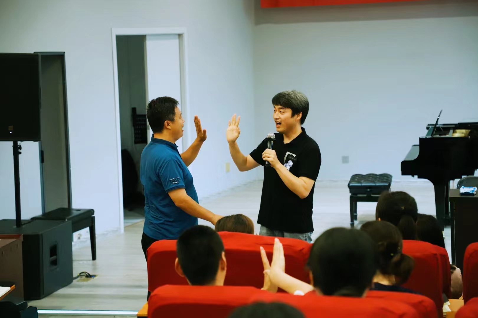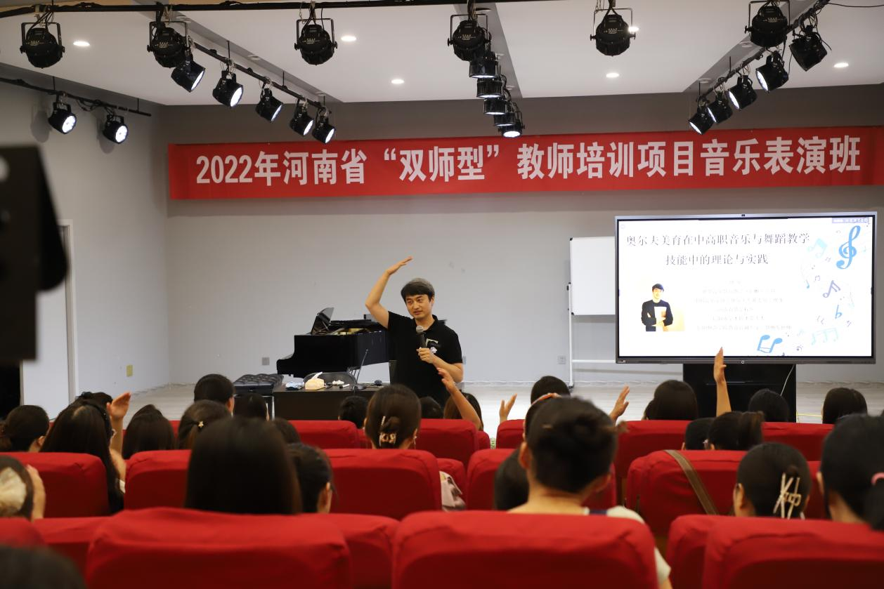 7月18日,beat365官网青年教师周骏在艺术楼八音讲堂为“双师”学员讲授奥尔夫音乐教学法。