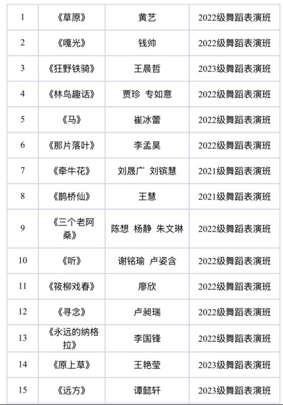 本次复赛的评委团队由舞蹈教研室教师组成,评委老师们根据选手们的舞蹈技巧、表现力、创意及整体效果等方面进行了综合评分,确保比赛的公正性和专业性。评委们对参赛选手们的表现进行了点评,既肯定了他们的优点和进步,也指出了存在的不足和需要改进的地方。评委们鼓励所有参赛选手继续努力,不断提升自己的舞蹈技艺和艺术修养。经过紧张激烈的角逐,最终有15名选手脱颖而出,成功晋级决赛。