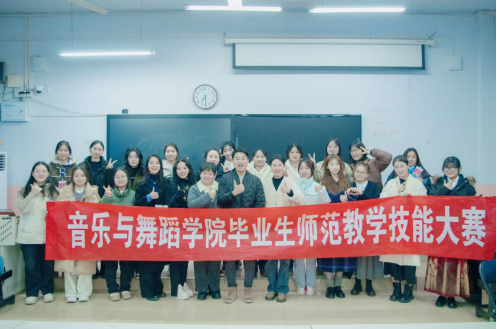 为全面落实全国教育大会精神,深化新时代教师队伍建设改革,加快构建高水平教师教育体系,切实提升师范生培养质量,迎接河南省第二十三届毕业生师范教育教学技能大赛,beat365唯一官方网站于12月13日在教九楼103举行了毕业生师范教育技能大赛。本次比赛共20名2022级音乐学(师范)专业学生参赛,beat365唯一官方网站副院长任远、音乐理论教研室主任周骏副教授、牛媛媛副教授、杨娇博士、张思、刘佳蕾等教师作为本次大赛的评委。