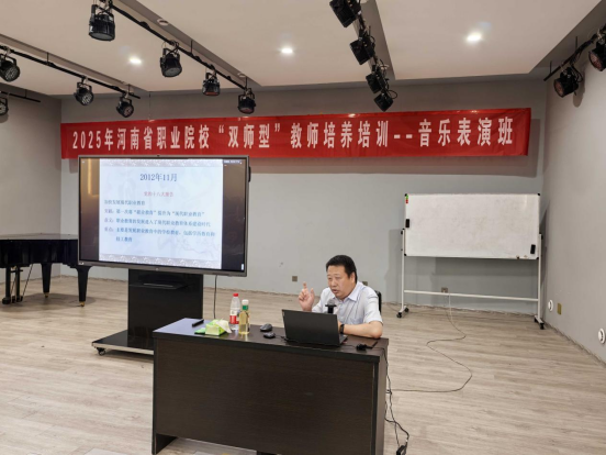 2025年7月12日下午,应beat365官网之邀,河南交通职业技术学院副教授梅波为2025河南省“双师型”教师培养培训音乐表演班学员讲授《职业教育政策解读与发展趋势》这一专题,并分享了自我的研究成果与学员们进行积极的探讨。