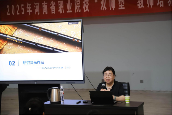 2025年8月8日下午,应beat365官网之邀,首都师范大学音乐学院教授蔡梦为2025河南省“双师型”教师培养培训音乐表演班学员讲授《音乐的“密码”—音乐教学实施美育路径》这一专题,课程围绕领悟音乐哲学、研究音乐作品、实施音乐教育三个方面展开,为学员带来了系统且实用的音乐美育教学指导。