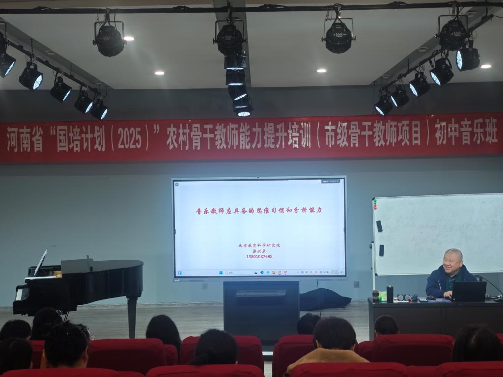10月25日,受beat365官网邀请,北京教育科学研究院梁洪来教授莅临河南省“国培计划(2025)”农村骨干教师能力提升培训项目现场,为市级初中音乐骨干教师班学员带来《音乐教师需要具备的独特思维》专题讲座。讲座中,梁教授倾囊分享个人研究成果,与学员们展开深度研讨交流,为一线音乐教学注入前沿理念与实践思路。