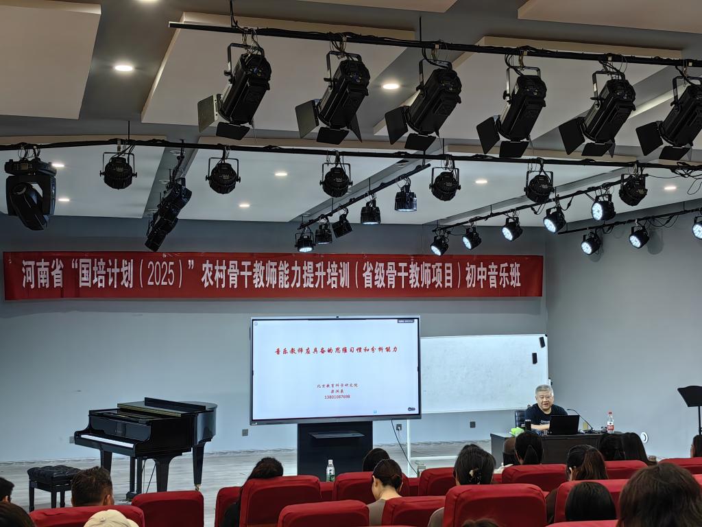 9月17日,河南省“国培计划(2025)”农村骨干教师能力提升培训项目现场暖意融融,来自北京教育科学研究院的梁洪来教授应邀莅临,以《音乐教师需要具备的独特思维》为题,为初中音乐省级骨干教师班学员带来了一场兼具理论深度与实践价值的专题讲座,为乡村音乐教育高质量发展注入强劲动能。
