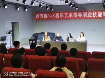 培训会由获教育部1+x器乐艺术指导培训师资格的栗树、张梦晗、史昀冉三位老师给大家分享交流,三位老师分别就《关于在院校实施“学历证书+若干职业技能等级证书”制度试点方案》文件、1+x器乐艺术指导职业技能等级证书及标准、考试流程和考核内容等几方面进行了详细地阐述和解读。副院长任远强调了本次培训与和考核的重要性、实用性和价值性,也对学生们提出了具体要求,叮嘱同学们认真备考、展现自我,期望顺利通过考核。培训会现场同学们深受鼓舞,纷纷表示将勤学苦练、增强本领,圆满完成培训任务。