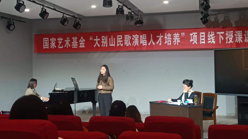 此次讲座中,黄慧慧教授提出教师要勇于突破自己,并对5位教师进行了指导,针对《歌从信阳来》《啊,我的大别山》等民歌,对音乐的腔体位置、民歌语气的起承转合、歌词处理层次等方面进行了详细讲解,使参加活动的教师得到了很大的提升。