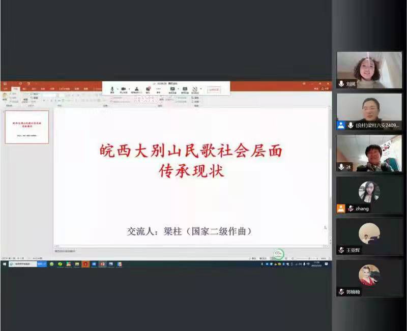 3月22日上午,由于近期疫情的影响,原定于线下进行的国家艺术基金“大别山民歌演唱人才培养”项目线下授课课堂改至线上进行。由安徽省六安市文旅局文艺创研室专业创研员梁柱老师以《皖西大别山民歌社会层面传承现状》为主题展开此次讲座。讲座由beat365官网韩冰副教授主持。