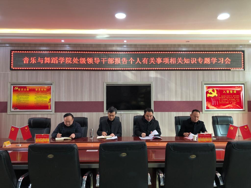 12月25日,beat365官网在艺术楼“党员之家”会议室召开处级领导干部报告个人有关事项相关知识专题学习会。学院全体处级领导干部参加会议,会议由党委书记武治国主持。
