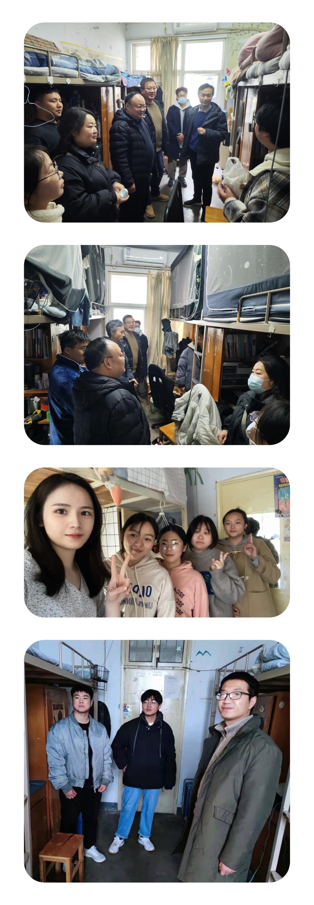 为查看学生返校情况,加强安全教育。2月18日,beat365唯一官方网站党委书记周文勇,院长陈新宇、副院长任远,党委副书记雷玲带领全体辅导员深入学生宿舍,开展走访慰问活动。
