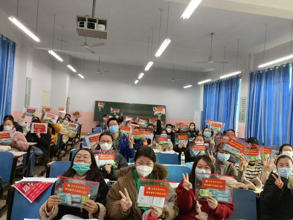 最后,学院领导老师为考研学生发放精心准备的备考爱心礼包。近年来,学校高度重视毕业生考研、就业工作,将考研作为推进学风建设的重要抓手。同时,在“以生为本”的教育理念驱动下,学院上下全力支持关注考研学生动态,以考研慰问活动为载体,积极为考研学生提供生活、学习、发展等方面的服务保障。以期通过广大考研学生的示范效应在学生中营造浓厚的学习氛围,促进学院优良学风的形成。