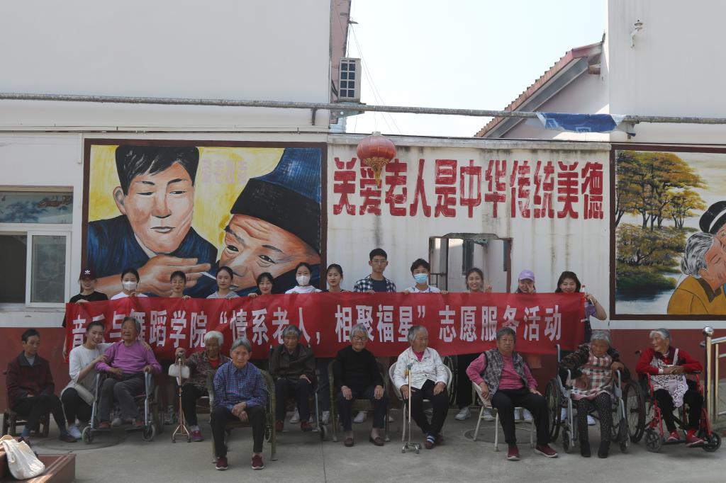 活动中,志愿者为敬老院带来饼干水果等慰问品,与老人们闲话家常,询问了他们的生活与身体状况,送上深情叮咛和衷心的祝愿,志愿者们还为老人准备了器乐演奏、歌曲、舞蹈等精彩纷呈的节目,让他们感受到欢乐幸福。活动结束后,学生志愿者与老人们合影留念。