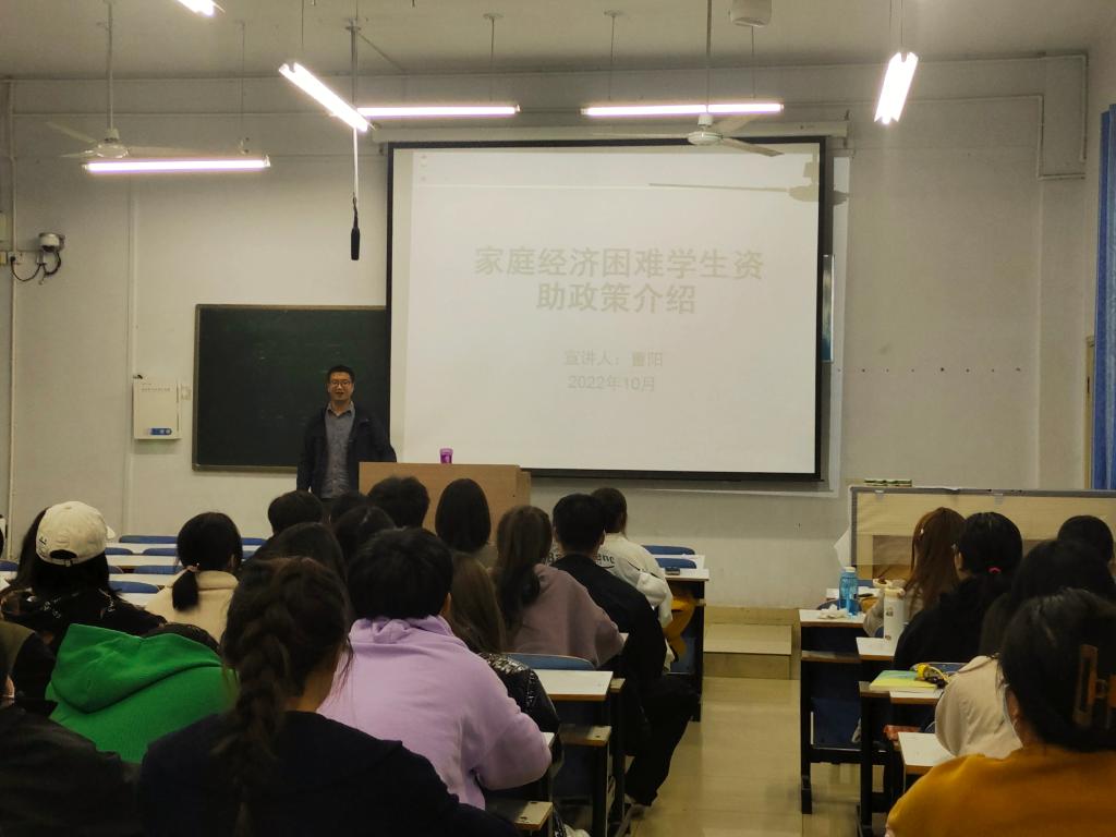 10月20日、10月25日,beat365官网在教九楼103教室、203教室面向2022级新生召开资助政策宣讲会,宣讲会由beat365官网资助专员曹阳老师主讲,2022级全体新生参会。