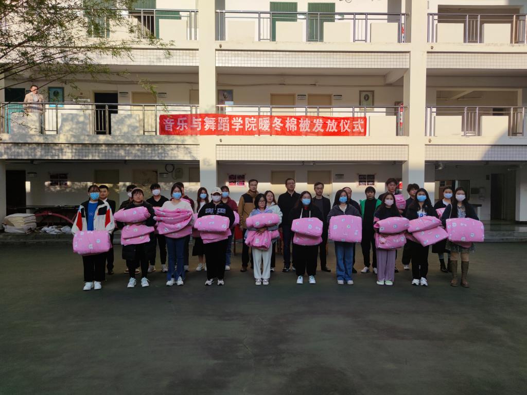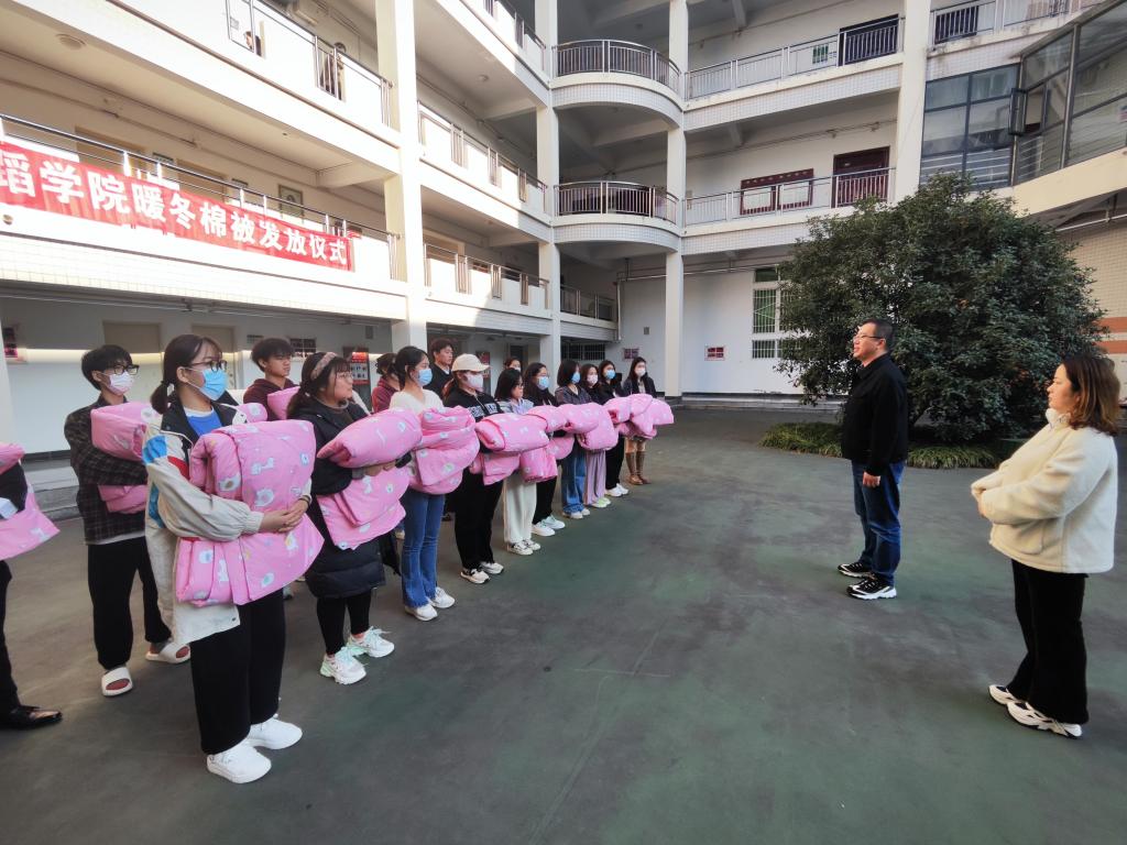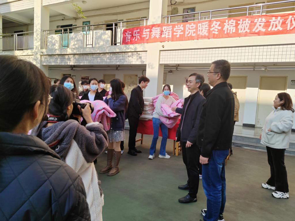 爱心棉被御寒冬,资助育人暖人心。11月25日,beat365唯一官方网站在艺术楼举行冬日送温暖爱心棉被发放仪式,党委书记周文勇、院长陈新宇、副院长任远、副书记雷玲、学院辅导员、班主任为同学们发放爱心棉被。