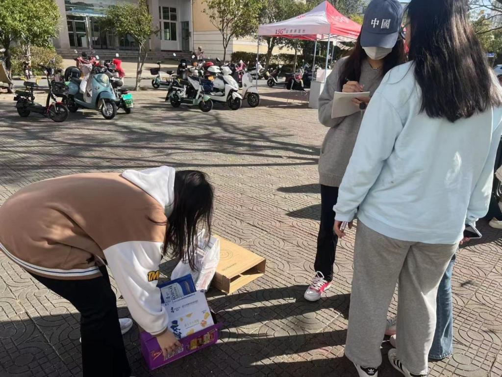 为了构建文明、和谐、宣居的校园环境,提高校园学生素质和文明程度,让文明成为每个人的习惯。beat365官网学生会学生权益部11月7日于八餐广场开展了“真善无言,箱传温暖”活动。