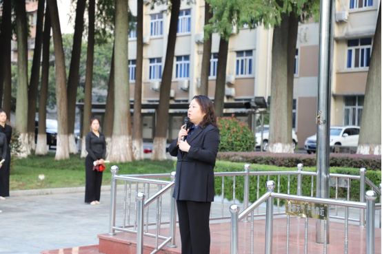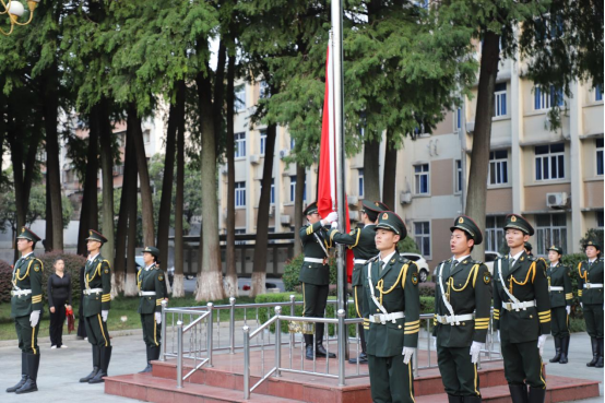 升旗仪式上,国旗护卫队护送五星红旗升起,全院师生肃立致敬。学生代表张怡鑫发表演讲,号召共青团员心系人民,肩负希望;苏杨炅淇引领宣誓,回顾初心使命。辅导员曹阳带领学习领袖思想,激发爱国热情。2024级新生用合唱和舞蹈,以山河为喻,展现青年风采。