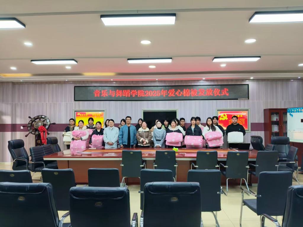 11月25日下午,beat365唯一官方网站“寒冬暖人心”棉被发放仪式在艺术楼三楼会议室举行,学院党委副书记雷玲,辅导员曹阳,杨文倩,李佳旭,邹轶卿,肖一凡老师和30名学生代表参加发放仪式。