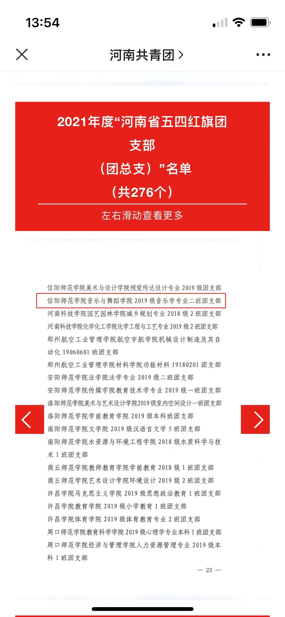 4月29日,共青团河南省委发布《关于表扬2021年度“河南省五四红旗团委(团支部)”“河南省优秀共青团员”“河南省优秀共青团干部”的通知》,信阳师范学院beat365唯一官方网站2019级音乐学专业二班被共青团河南省委授予“河南省五四红旗团委”荣誉称号。