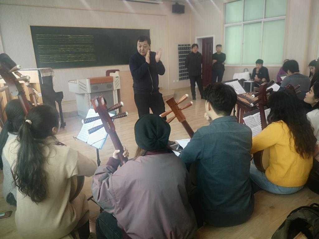 杜宏亚等专家先对合唱曲目《新的天地》进行了细致地指导,随后对男生联唱的四首歌曲进行了现场排练。5日上午,各位专家分别对古筝重奏《西域随想》和女生联唱曲目进行了排练和指导,下午,对弦乐四重奏《G大调小夜曲》、板胡独奏《花梆子》和弹拨乐合奏《三六》等曲目进行了详细地排练指导。