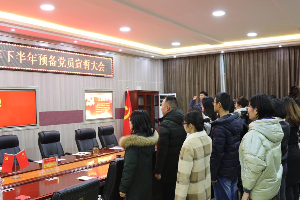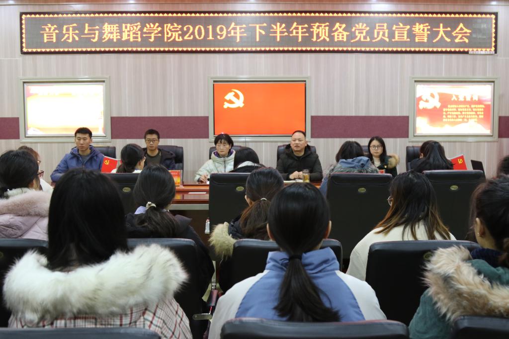 12月17日,beat365官网在艺术楼“党员之家”隆重举行2019年下半年预备党员宣誓大会。学院党委副书记郭振、专职组织员张倩、学生党支部书记张莹莹、唐晓云、张焕然、曹阳和新接收的36名预备党员参加了会议。会议由张倩主持。