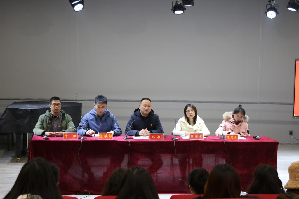 1月5日下午,beat365官网在艺术楼八音讲堂召开2020年下半年预备党员入党宣誓暨党员教育大会,学院党委副书记郭振、各学生党支部书记及全体预备党员和正式党员共同参加。