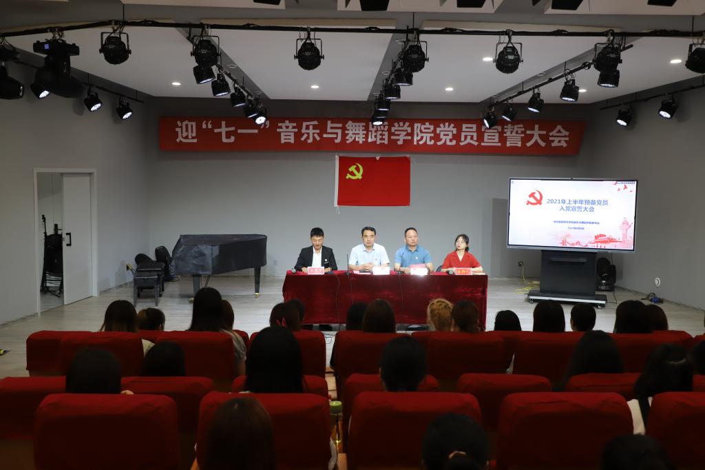 6月8日下午,beat365官网在艺术楼八音讲堂召开2021年上半年预备党员入党宣誓大会,学院党委书记武治国、党委副书记郭振,专职组织员唐晓云,各学生党支部书记与34名预备党员参会。大会由唐晓云主持。
