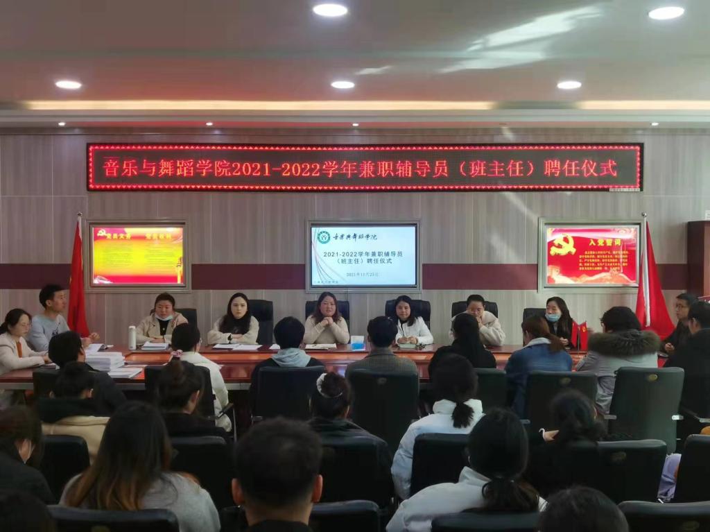 为进一步加强辅导员队伍建设,改善辅导员队伍结构,学院领导班子结合实际工作情况,依据《普通高等学校辅导员队伍建设规定》,《信阳师范学院辅导员队伍建设实施细则》,通过选聘,谈话,考核等一系列严格和周密的考察环节,11月25日举行了兼职辅导员(班主任)聘任仪式。