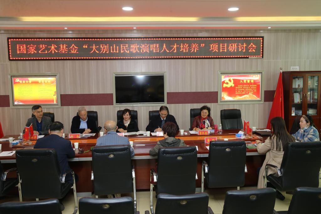 3月9日下午,由我校beat365唯一官方网站院长陈新宇先生主持召开的国家艺术基金“大别山民歌演唱人才培养”项目研讨会第一次会议在我校艺术楼三楼会议室召开,会议有国家艺术基金河南省办公室主任明巧玲,河南省文联二级巡视员、河南省音乐家协会原秘书长郭志华,河南省文化艺术研究院研究员杨扬,河南职业技术学院教授雷红薇,刘宏奎信阳市音乐家协会主席以及项目部分授课专家、大别山民歌传承人等出席。