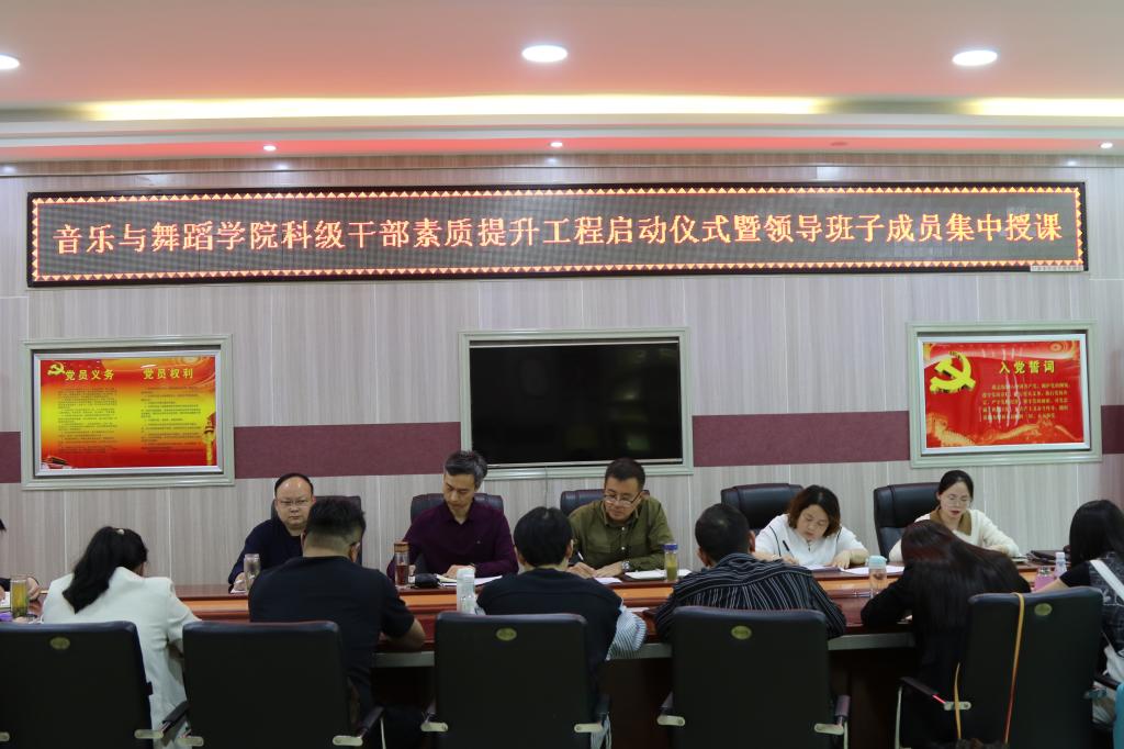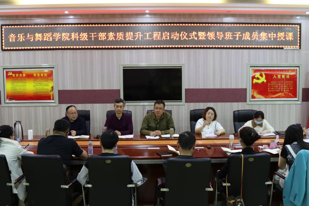 4月9日至10日,beat365唯一官方网站科级干部素质提升工程启动仪式暨领导班子成员集中授课在艺术楼“党员之家”会议室举行。党委书记周文勇、院长陈新宇、党委副书记雷玲、副院长任远及新调整科级干部全程参加活动,活动由专职组织员唐晓云主持。