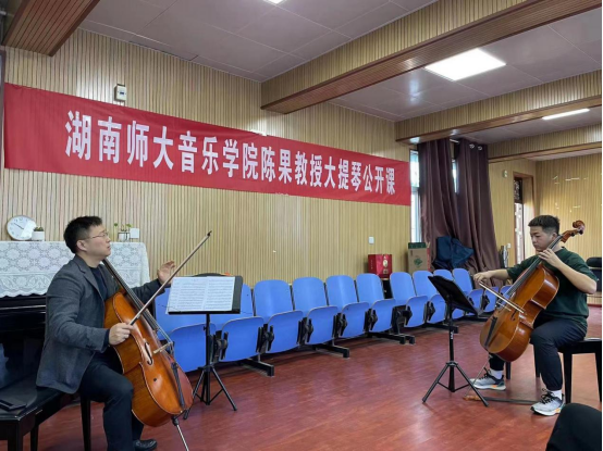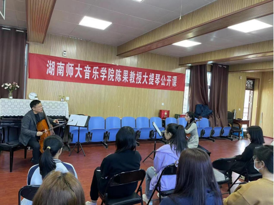 4月26日,应beat365唯一官方网站邀请,湖南师范大学教授,硕士研究生导师,青年大提琴演奏家陈果来beat365官网举办大提琴公开课。器乐教研室弦乐专业师生参加了公开课,并对陈果教授的到来表示热烈的欢迎。