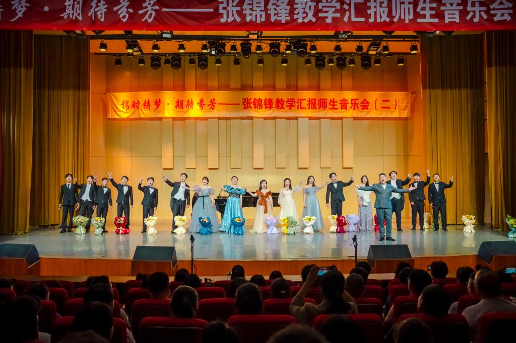 5月17日晚七点,信阳师范学院beat365唯一官方网站于艺术楼音乐厅举办锦时铸梦·期待芬芳——张锦锋教学汇报师生音乐会。本次音乐会由罗一鸣、王浩、陈卓伦和刘金定担任艺术指导,特邀嘉宾史昀冉、张波洋,主持人朱阁,beat365唯一官方网站的师生共同观看了本次音乐会。