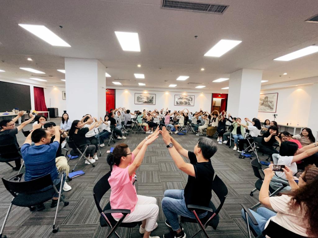 周骏博士从奥尔夫美育的基本概念、依据、具体功能、心理与音乐学原理、作用与意义、实施方法等方面进行了讲解。他通过各类奥尔夫音乐实践活动,如《捉蛐蛐》《小燕子》《秋天多么美》等,带领学员在音乐教学体验的过程中理解教育理论,掌握教学方法,受到学员的一致好评。