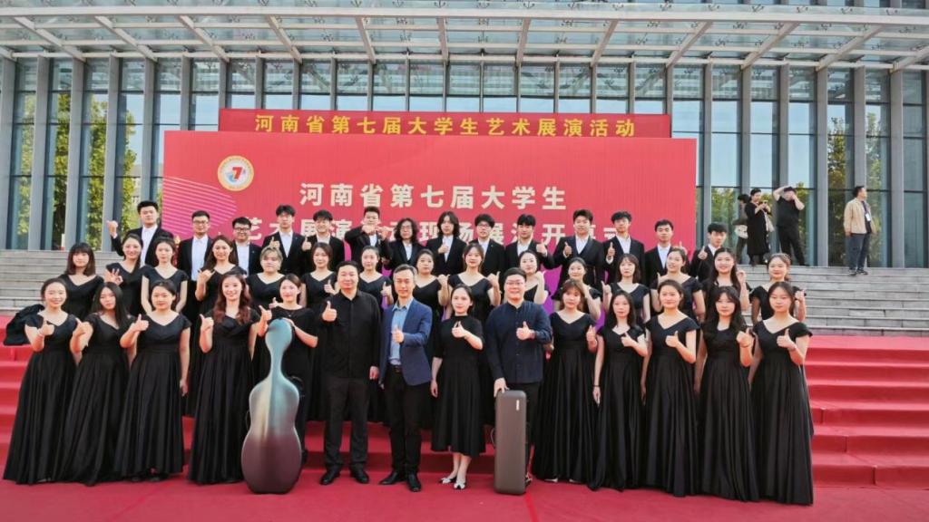 10月26日,由河南省教育厅主办、郑州师范学院承办的河南省第七届大学生艺术展演活动在郑州师范学院开幕,beat365官网舞蹈教研室由刘小雷、冯燕、李梦婷老师原创的舞蹈作品《桂花飘香》,声乐教研室由张波洋老师担任指挥,王霖、刘金定、段新惠老师担任伴奏的合唱作品《莫尼山》,器乐教研室由闫怡君老师指导的古筝重奏《夜深沉》成功入围并参加全省展演。