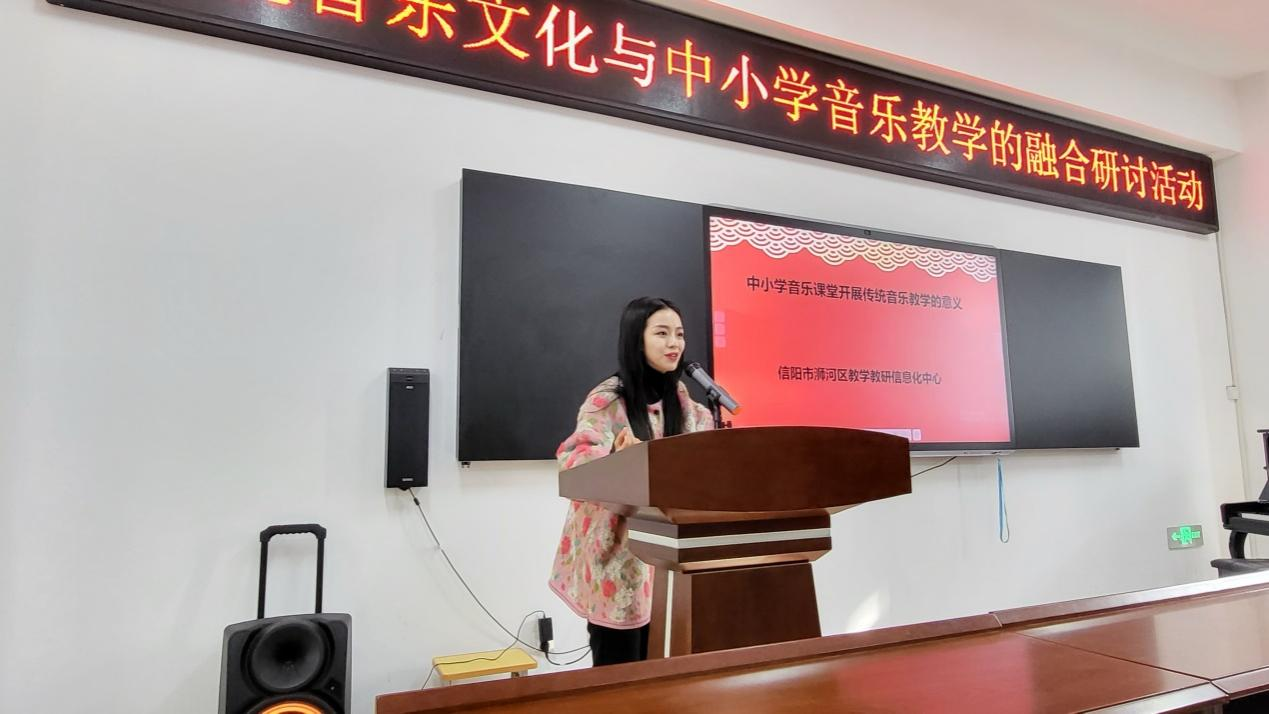 此次活动由浉河区教学教研信息化中心刘艳老师主持,在琵琶山学校举行。以两节展示课为主要内容。第一节是来自琵琶山学校初中音乐教师黄倩,授课内容是《多彩的中国民歌》,第二节是来自胜利路小学音乐教师高冉冉,授课内容是《走近京剧》。