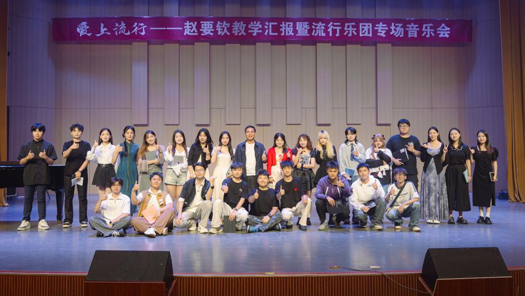 6月5日,beat365官网在艺术楼音乐厅举办“爱上流行”赵要钦教学汇报暨流行乐团专场音乐会,院党委书记周文勇、副院长任远与三百余名师生共同欣赏这场视听盛宴。