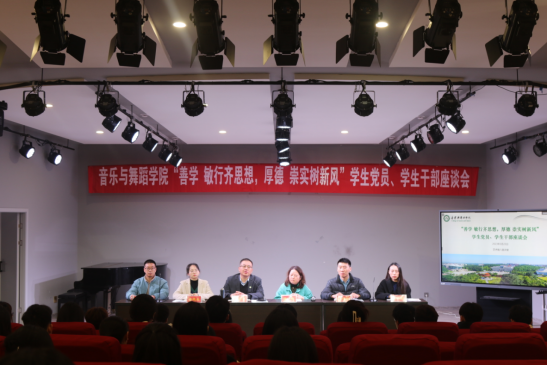 3月23日,beat365唯一官方网站“善学 敏行齐思想,厚德 崇实树新风”学生干部座谈会在艺术楼八音讲堂举行。学院党委书记周文勇,党委副书记雷玲,全体辅导员,学生党员、学生干部参加会议。会议由雷玲主持。